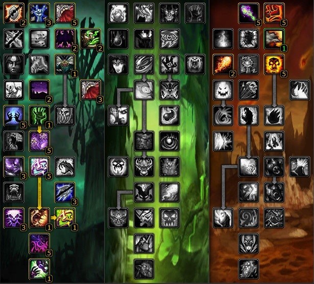 고통+사냥개 특성입니다. 암흑의 계약을 찍는 특성은 주문력이 어느정도 궤도에 올라왔을때 찍는 특성으로 이해하시면 됩니다.